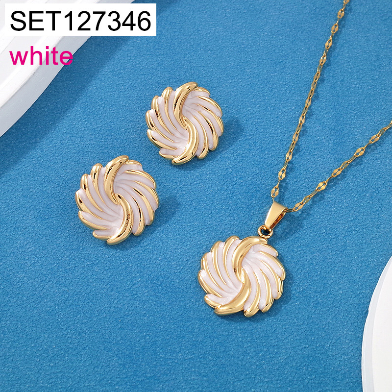 Level C Stainless Steel New Trendy Women Jewelry Drip Oil/Enamel White Flower Golden SET