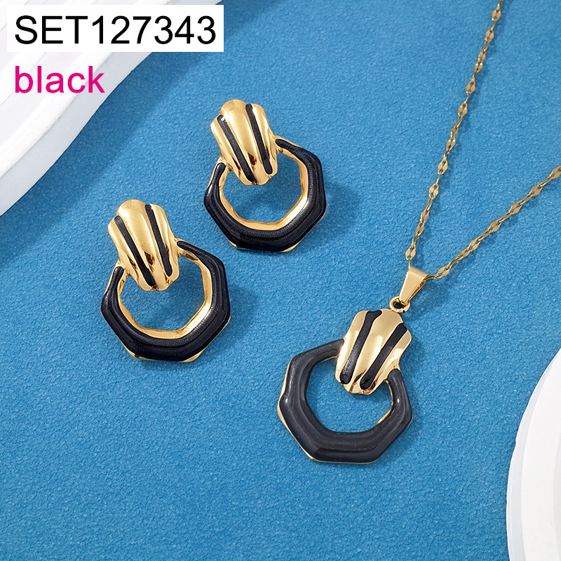 Home > Stainless Steel Sets > Hot Set Jewerly > Level C Stainless Steel New Trendy Women Jewelry Drip Oil/Enamel Black Geometry Golden SET