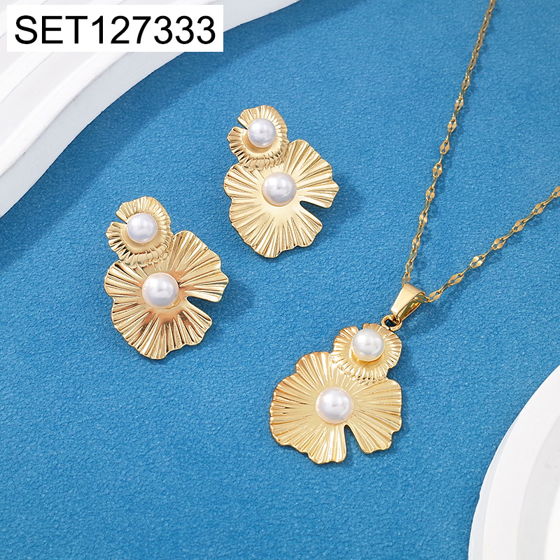 Home > Stainless Steel Sets > Hot Set Jewerly > Level C Stainless Steel New Trendy Women Jewelry Pearl Style/Plastic Beads Flower Golden SET