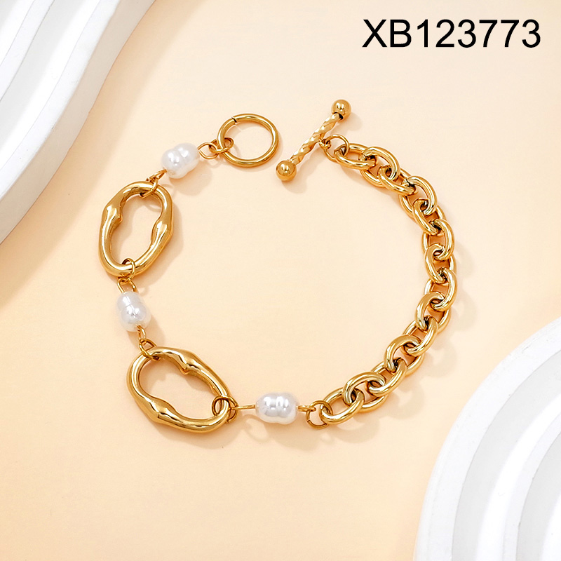 Level B Stainless Steel New Trendy Women Jewelry Pearl Style/Plastic Beads Golden Bracelet