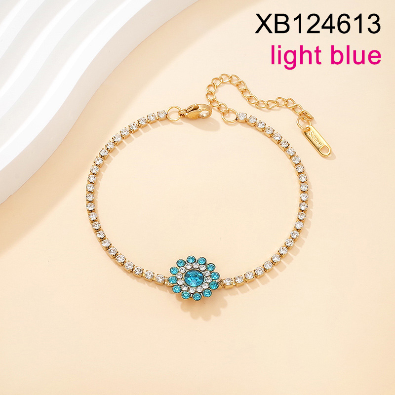 Home > Stainless Steel Bracelets > Hot Bracelet > Level B Stainless Steel New Trendy Women Jewelry Flower Golden Rhinestone Tennis Chain Bracelet
