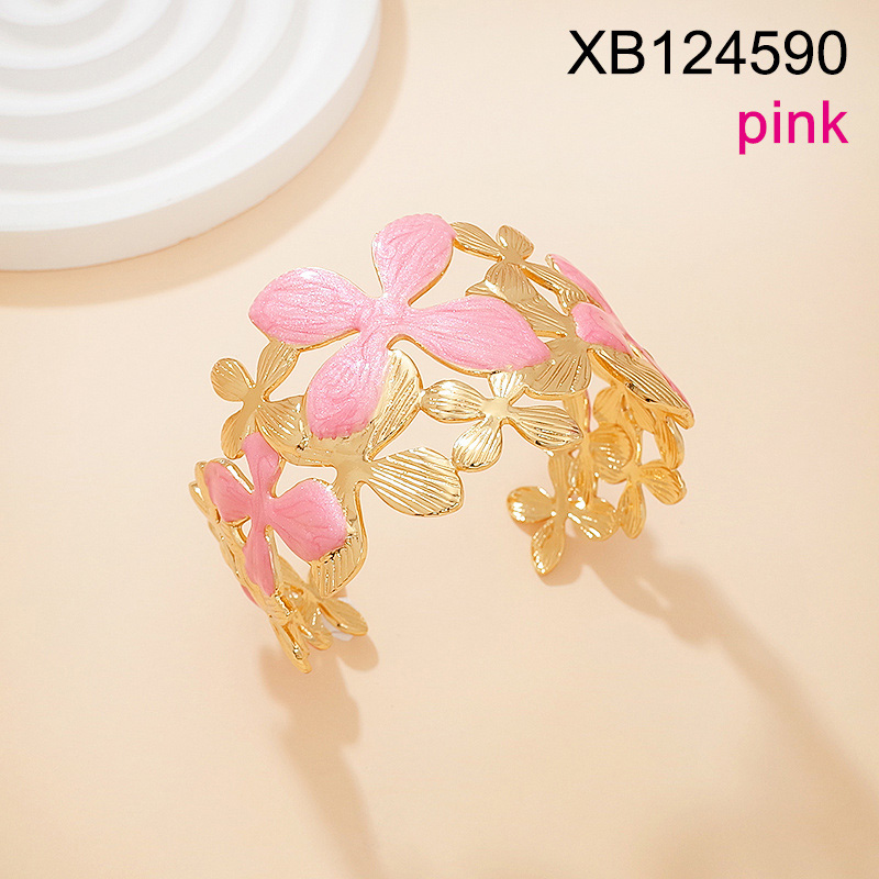 Home > Stainless Steel Bracelets > Hot Bracelet > Level C Stainless Steel New Trendy Women Jewelry Drip Oil/Enamel Flower Golden Open Bangle;Bangle size can be adjusted freely