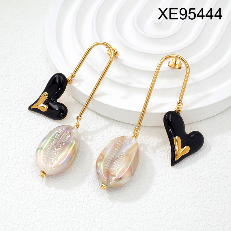 Level B Stainless Steel New Trendy Women Jewelry Heart Shell Golden Earrings