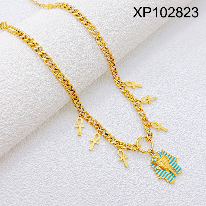 Level B Stainless Steel New Trendy Women Jewelry Pharaoh of Egypt Golden Pendant
