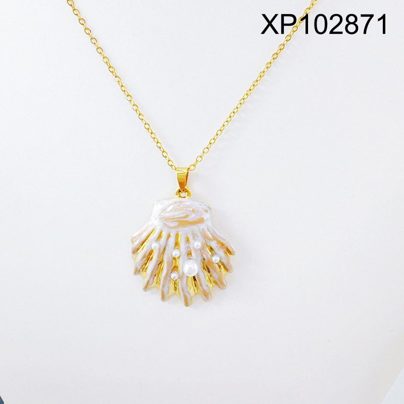 Home > Stainless Steel Pendants > Hot Pendant > Level B Stainless Steel New Trendy Women Jewelry Summer beach Drip Oil/Enamel Animal Shell Golden Pendant
