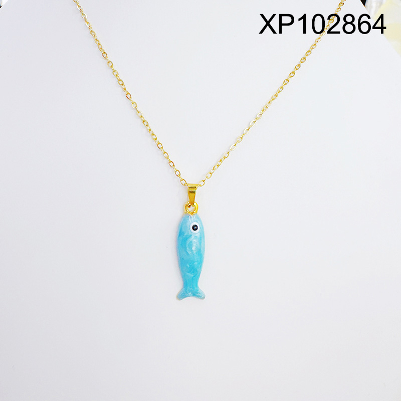 Level B Stainless Steel New Trendy Women Jewelry Summer beach Drip Oil/Enamel Animal Fish Golden Pendant