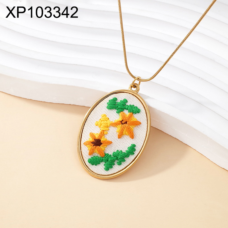Home > Stainless Steel Pendants > Hot Pendant > Level B Stainless Steel New Trendy Women Jewelry Oval Flower Golden Pendant