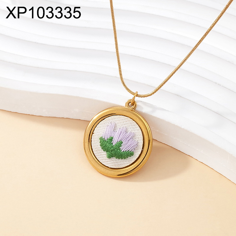 Level B Stainless Steel New Trendy Women Jewelry Round Flower Golden Pendant