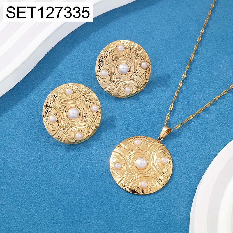 Home > Stainless Steel Sets > Imitation Pearl Sets > Level C Stainless Steel New Trendy Women Jewelry Pearl Style/Plastic Beads Round Golden SET