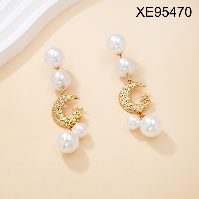 Level B Stainless Steel New Trendy Women Jewelry Pearl Style/Plastic Beads Moon Golden Earrings