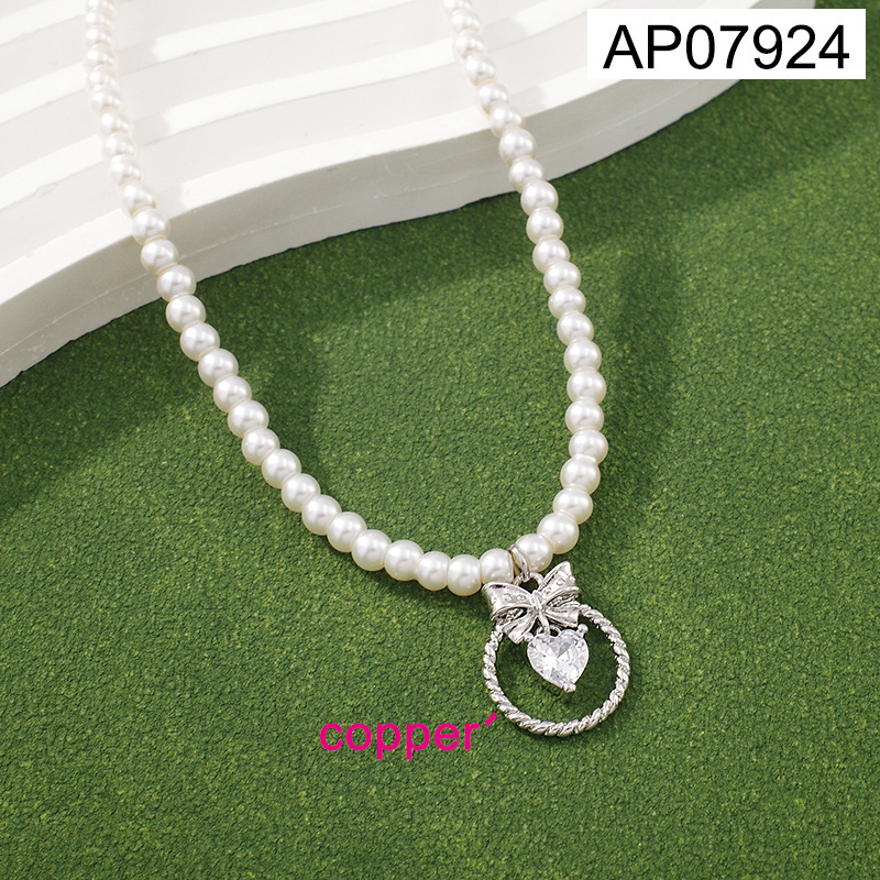 Level B Fashion Jewelry New Trendy Women Jewelry Pearl Style/Plastic Beads Round Heart Bowknot Steel color Pendant;Material:copper (cobre)