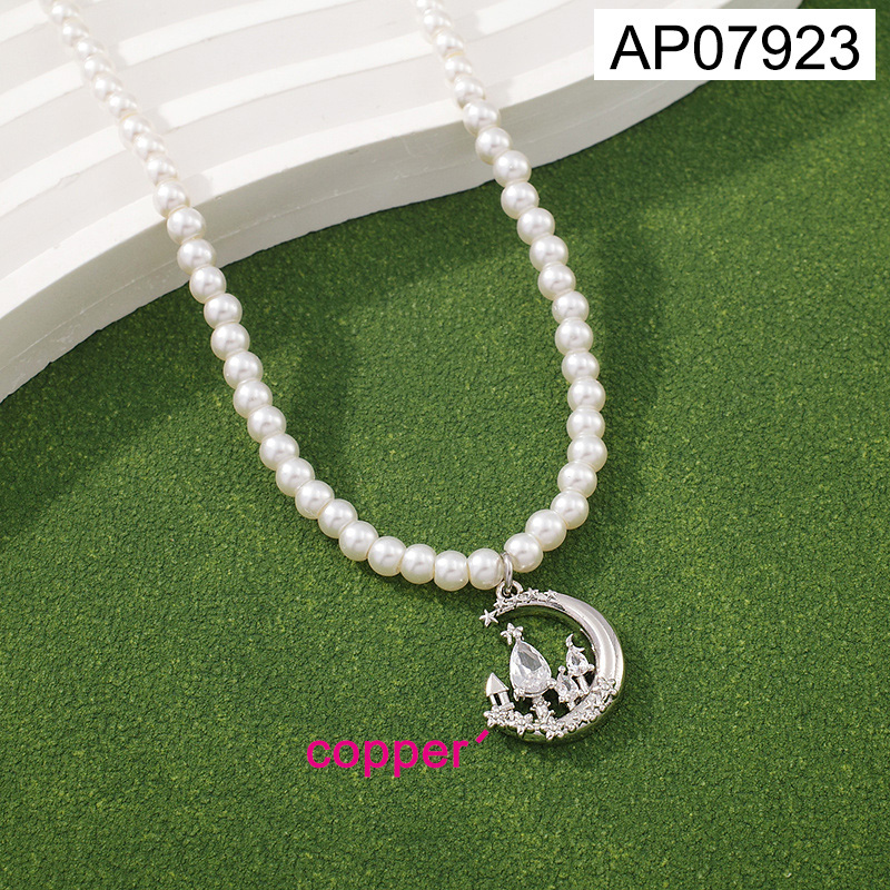 Level B Fashion Jewelry New Trendy Women Jewelry Pearl Style/Plastic Beads Moon Castle Steel color Pendant;Material:copper (cobre)