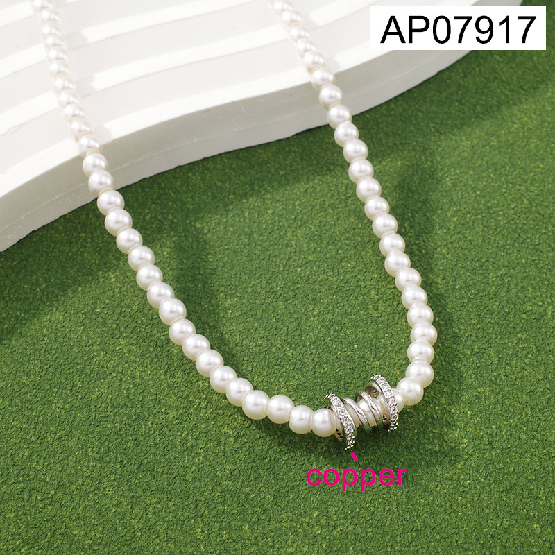 Home > Stainless Steel Necklaces > Imitation Pearl Necklace > Level B Fashion Jewelry New Trendy Women Jewelry Pearl Style/Plastic Beads Slender Waist Steel color Pendant;Material:copper (cobre)