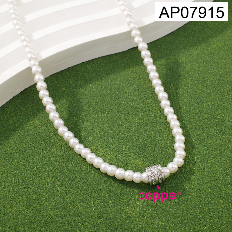 Home > Stainless Steel Necklaces > Imitation Pearl Necklace > Level B Fashion Jewelry New Trendy Women Jewelry Pearl Style/Plastic Beads Slender Waist Steel color Pendant;Material:copper (cobre)