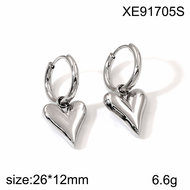 Level A Stainless Steel Jewelry New Trendy Heart Steel color Valentine's Day Hoop Earring
