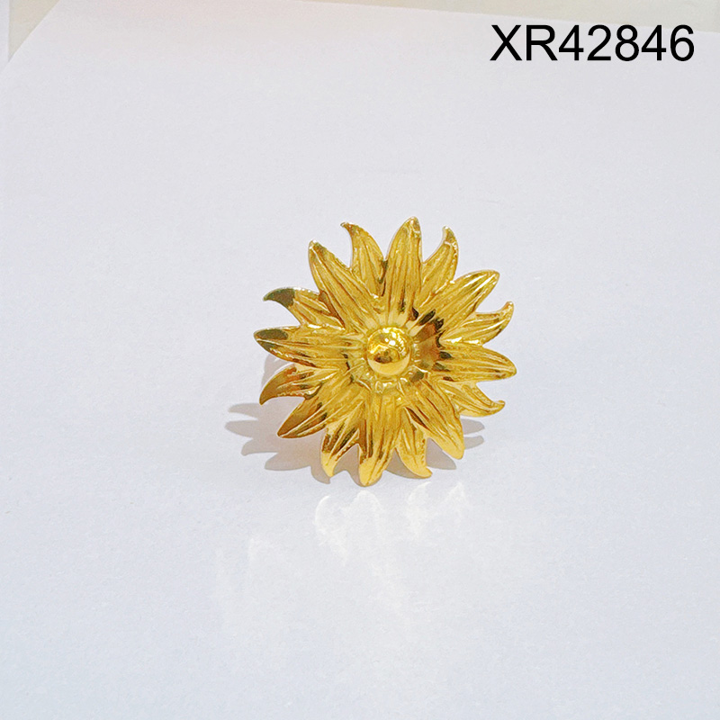 Level C Stainless Steel New Trendy Women Jewelry Flower Golden Open Rings;Ring size can be adjusted freely
