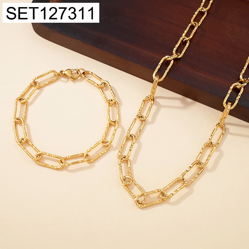 Home > Stainless Steel Sets > Necklaces & Bracelets > Level B Stainless Steel New Trendy Women Jewelry Golden Chain SET