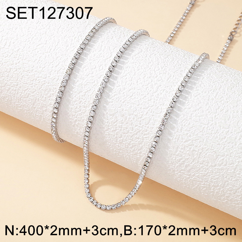 Home > Stainless Steel Sets > Necklaces & Bracelets > Level B Stainless Steel New Trendy Women Jewelry Round White Rhinestone Steel color Chain SET
