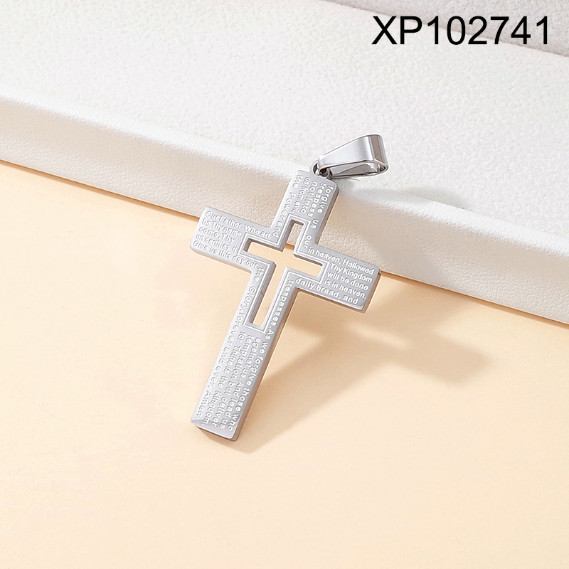 Level B Stainless Steel New Trendy Man Jewelry Cross Scriptures Steel color Pendant