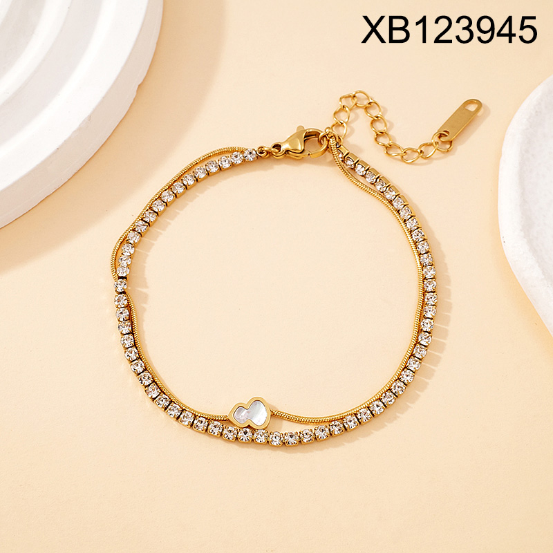 Level B Stainless Steel New Trendy Women Jewelry Two Layers Chain White Rhinestone Calabash Golden Bracelet