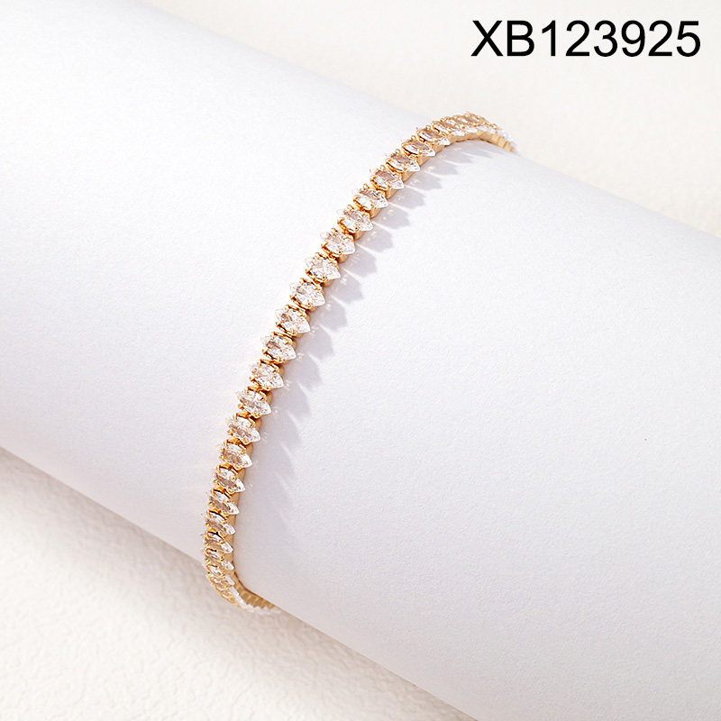 Home > Stainless Steel Bracelets > Semi-precious Stones Jewelry Bracelets > Level B Stainless Steel New Trendy Women Jewelry White Zircon Golden Bracelet