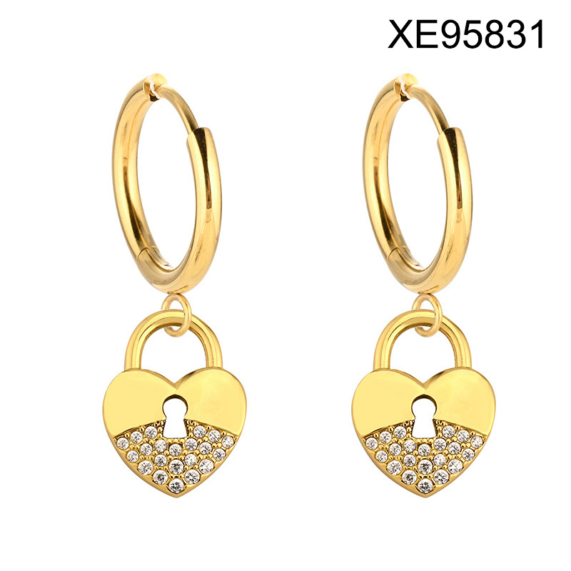 Level B Stainless Steel New Trendy Women Jewelry Lock Heart Golden Valentine's Day Hoop Earrings