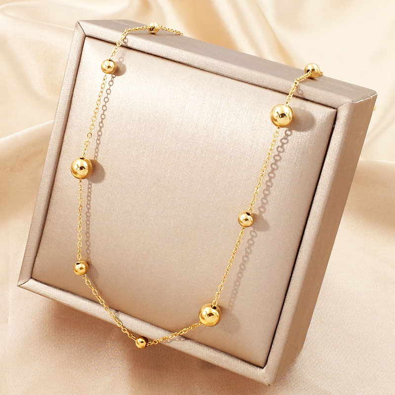 Level B Stainless Steel New Trendy Women Jewelry Round Golden Sweater chain SET