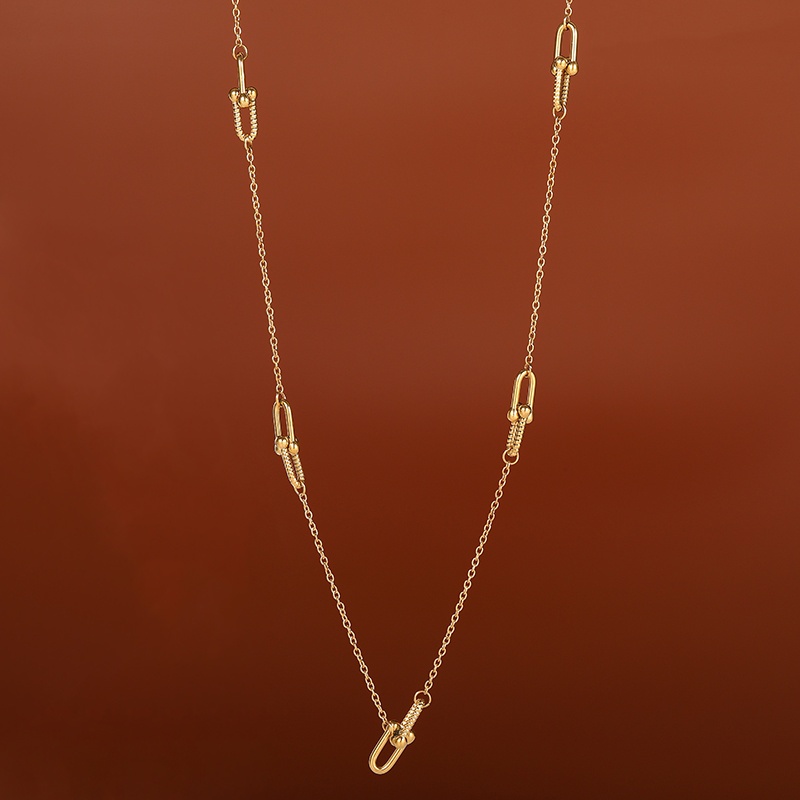 Level A Stainless Steel New Trendy Women Jewelry Horseshoe buckle Golden Sweater Chain Pendant