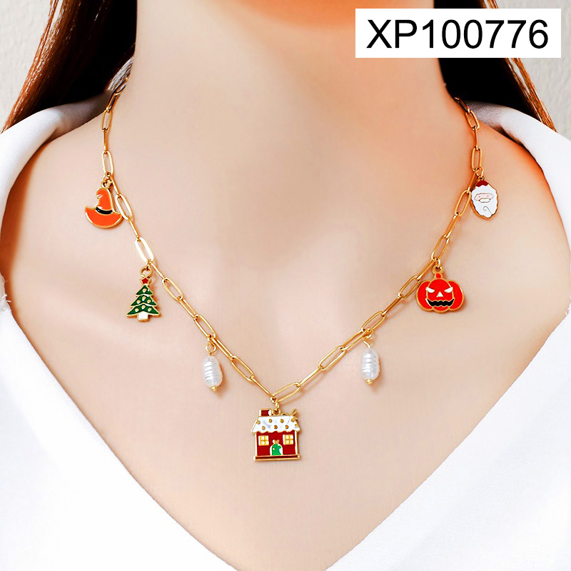 Level C Stainless Steel New Trendy Women Jewelry Drip Oil/Enamel Christmas Golden Pendant