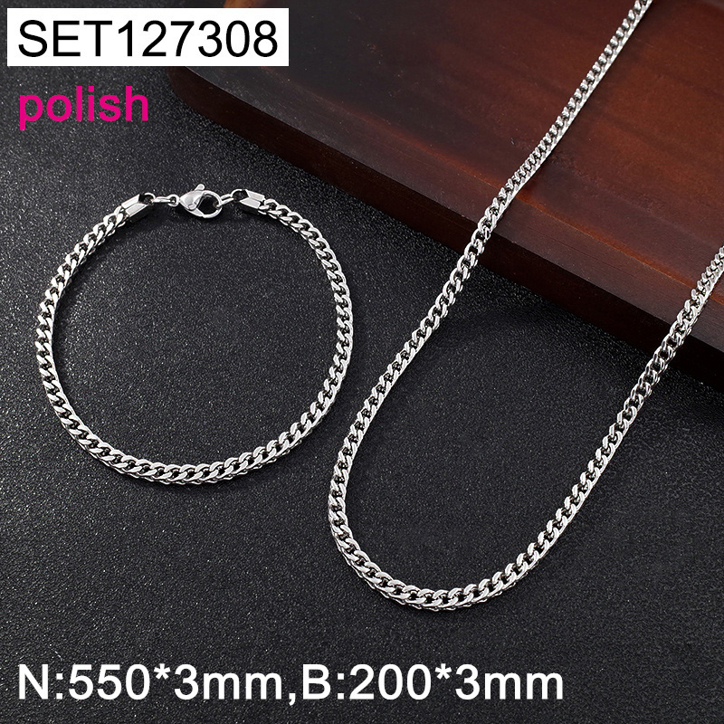 Level B Stainless Steel New Trendy Unisex Jewelry Steel color Polish Chain SET