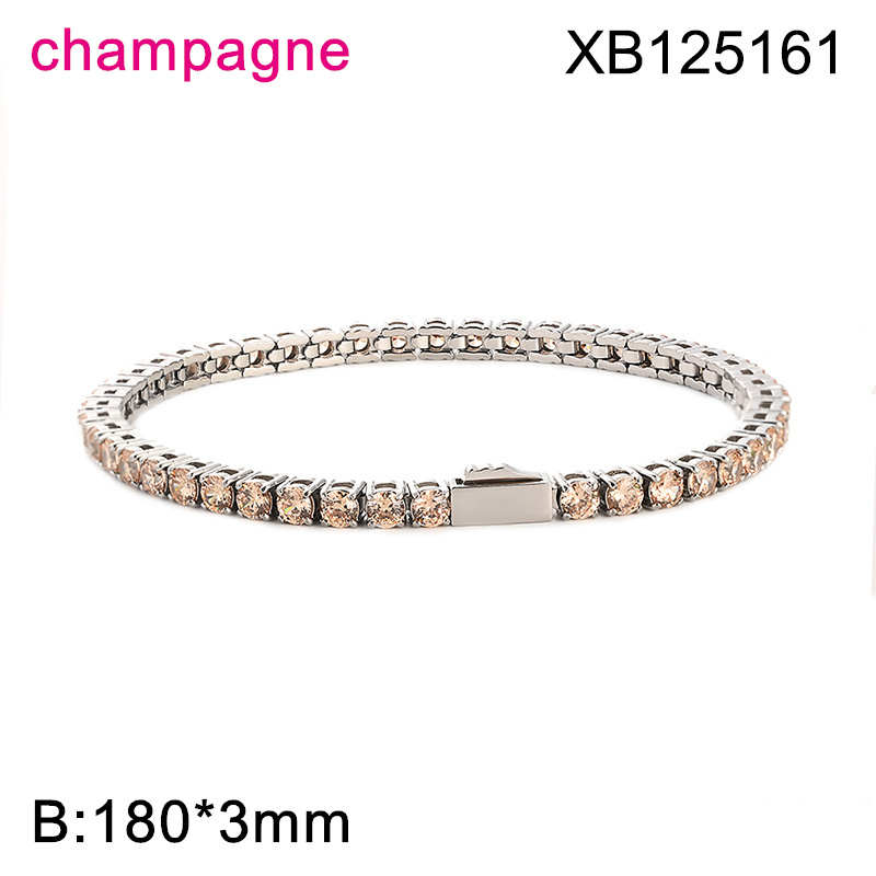 Level B Hot Sale Women Jewelry Steel color Champagne Round 316 Stainless Steel Cubic Zirconia Tennis Bracelet