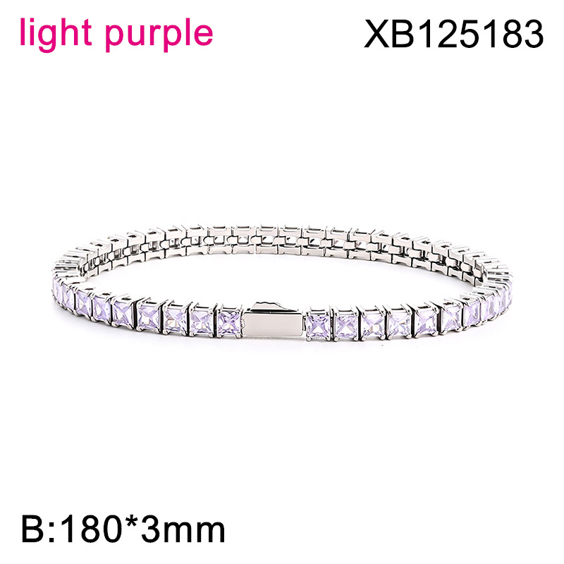 Level B Hot Sale Women Jewelry Steel color Light purple Square 316 Stainless Steel Cubic Zirconia Tennis Bracelet
