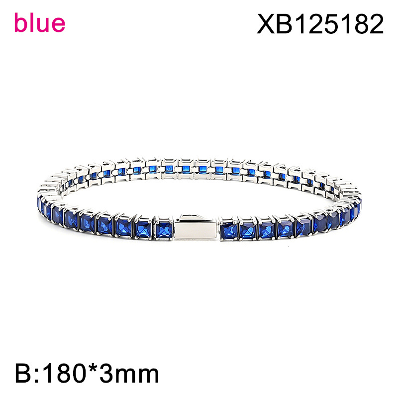 Level B Hot Sale Women Jewelry Steel color Blue Square 316 Stainless Steel Cubic Zirconia Tennis Bracelet