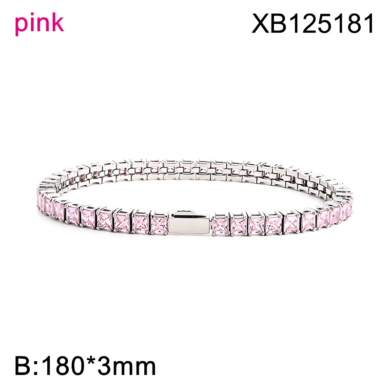 Level B Hot Sale Women Jewelry Steel color Pink Square 316 Stainless Steel Cubic Zirconia Tennis Bracelet