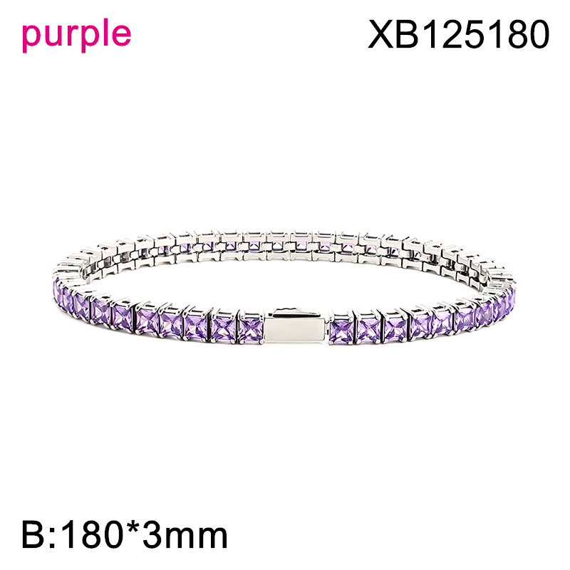 Level B Hot Sale Women Jewelry Steel color Purple Square 316 Stainless Steel Cubic Zirconia Tennis Bracelet