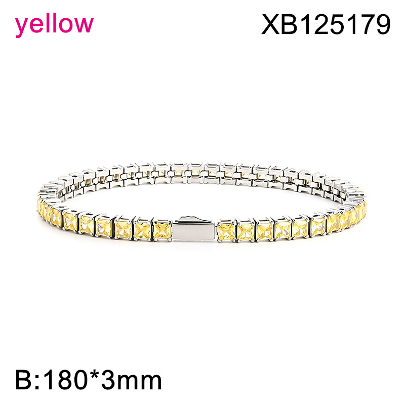 Level B Hot Sale Women Jewelry Steel color Yellow Square 316 Stainless Steel Cubic Zirconia Tennis Bracelet