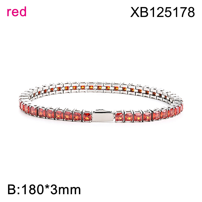 Level B Hot Sale Women Jewelry Steel color Red Square 316 Stainless Steel Cubic Zirconia Tennis Bracelet