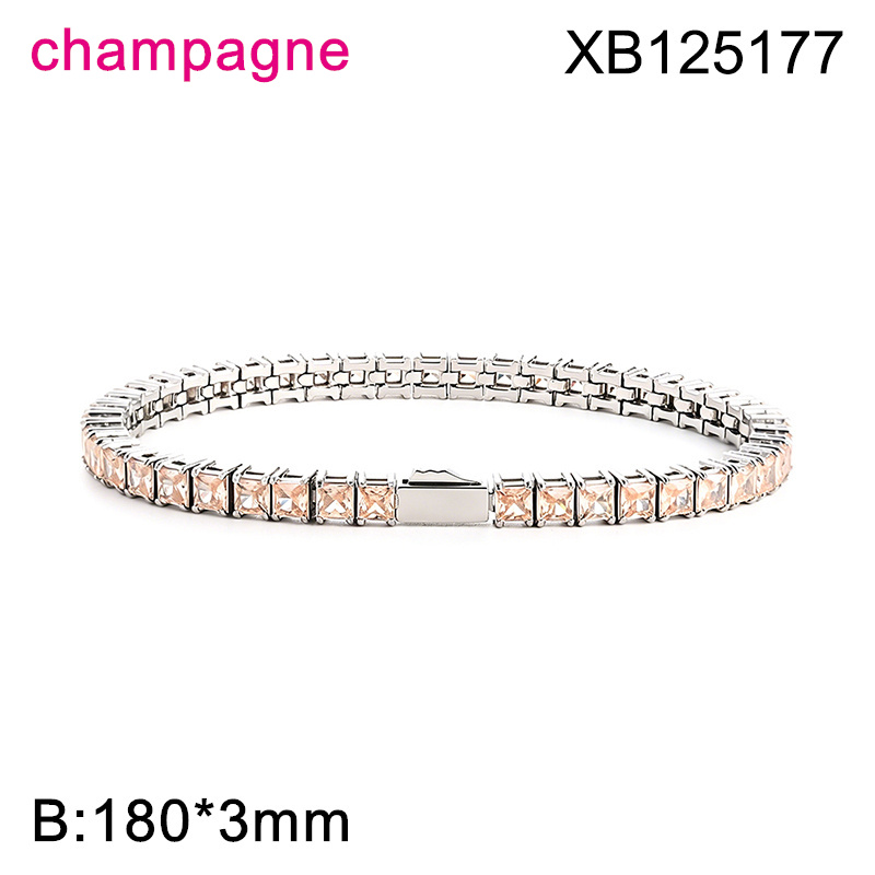 Level B Hot Sale Women Jewelry Steel color Champagne Square 316 Stainless Steel Cubic Zirconia Tennis Bracelet