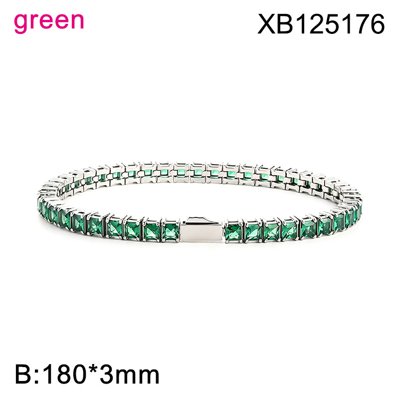 Level B Hot Sale Women Jewelry Steel color Green Square 316 Stainless Steel Cubic Zirconia Tennis Bracelet