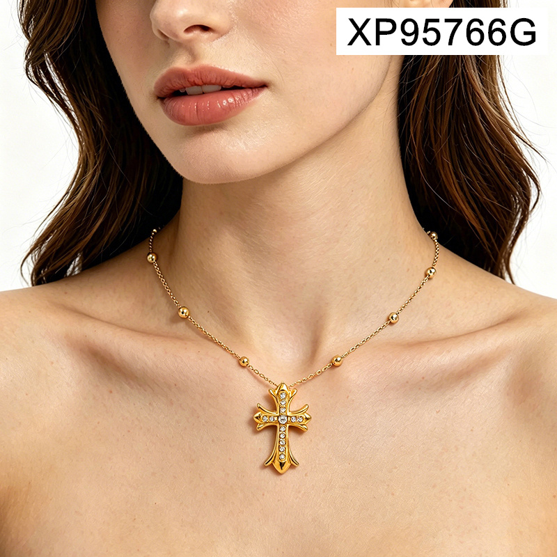Level A Stainless Steel Jewelry New Trendy Sticky Stone Cross Golden Pendant