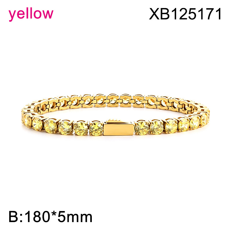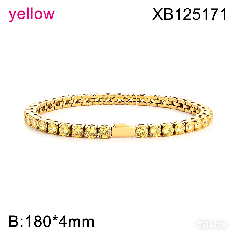 Level B Hot Sale Women Jewelry Golden Yellow Round 316 Stainless Steel Cubic Zirconia Tennis Bracelet