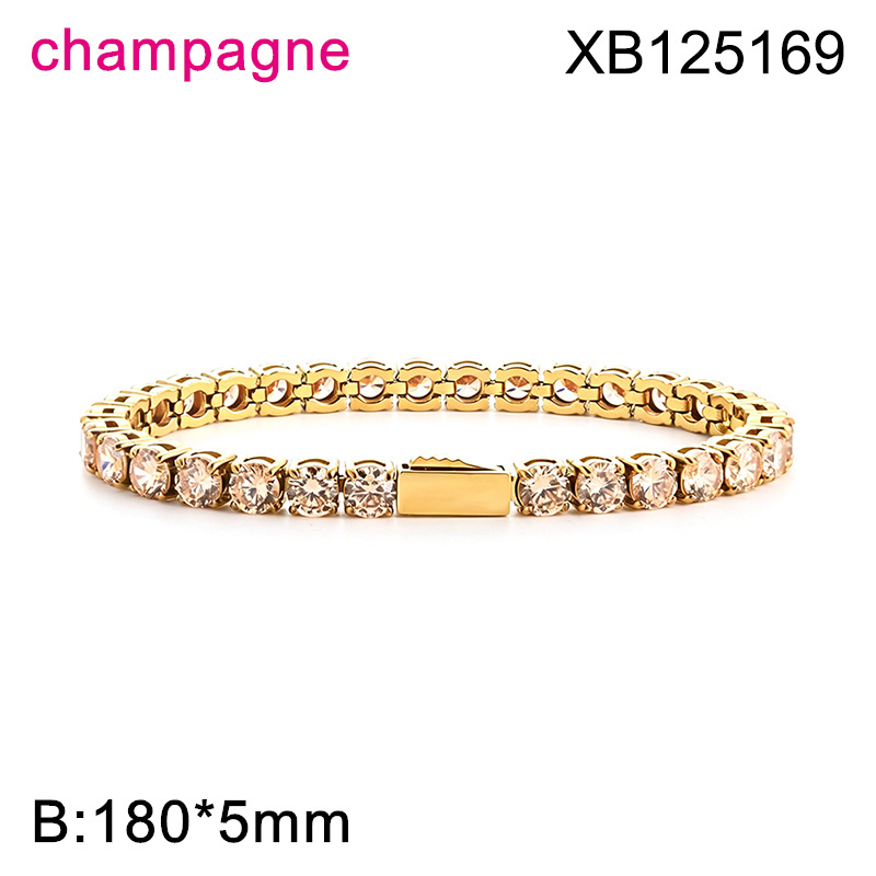 Level B Hot Sale Women Jewelry Golden Champagne Round 316 Stainless Steel Cubic Zirconia Tennis Bracelet