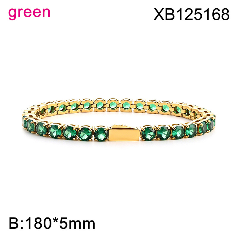 Level B Hot Sale Women Jewelry Golden Green Round 316 Stainless Steel Cubic Zirconia Tennis Bracelet