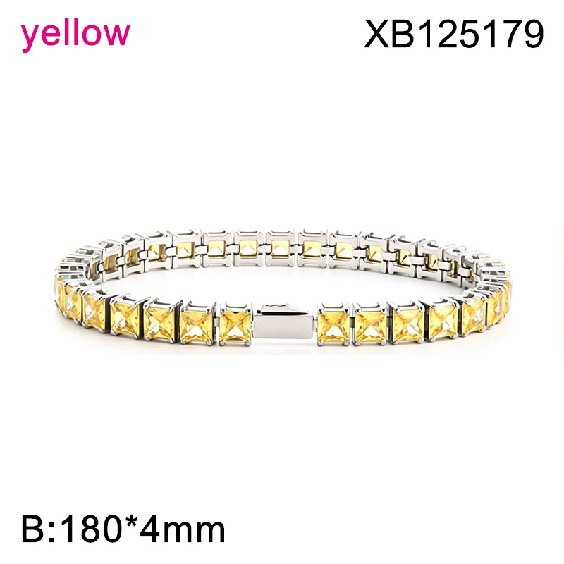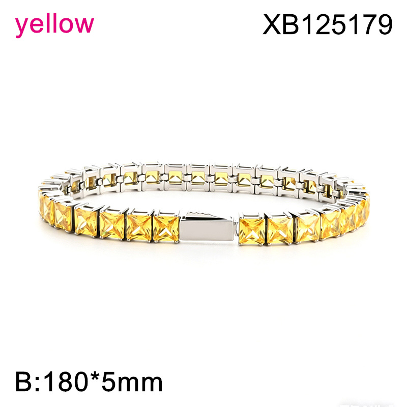 Level B Hot Sale Women Jewelry Steel color Yellow Square 316 Stainless Steel Cubic Zirconia Tennis Bracelet