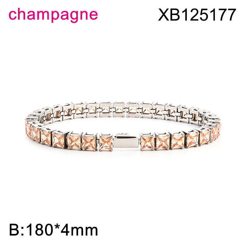 Level B Hot Sale Women Jewelry Steel color Champagne Square 316 Stainless Steel Cubic Zirconia Tennis Bracelet