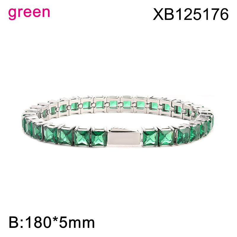 Level B Hot Sale Women Jewelry Steel color Green Square 316 Stainless Steel Cubic Zirconia Tennis Bracelet