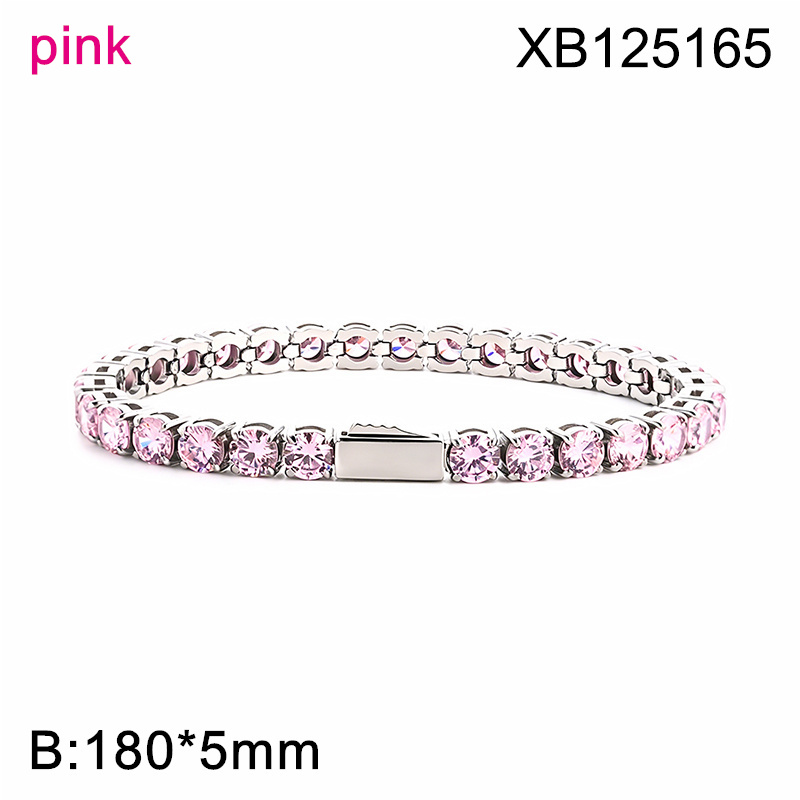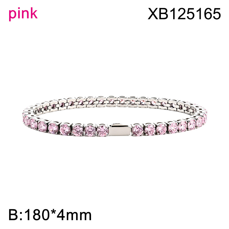 Level B Hot Sale Women Jewelry Steel color Pink Round 316 Stainless Steel Cubic Zirconia Tennis Bracelet