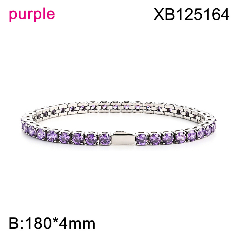 Level B Hot Sale Women Jewelry Steel color Purple Round 316 Stainless Steel Cubic Zirconia Tennis Bracelet