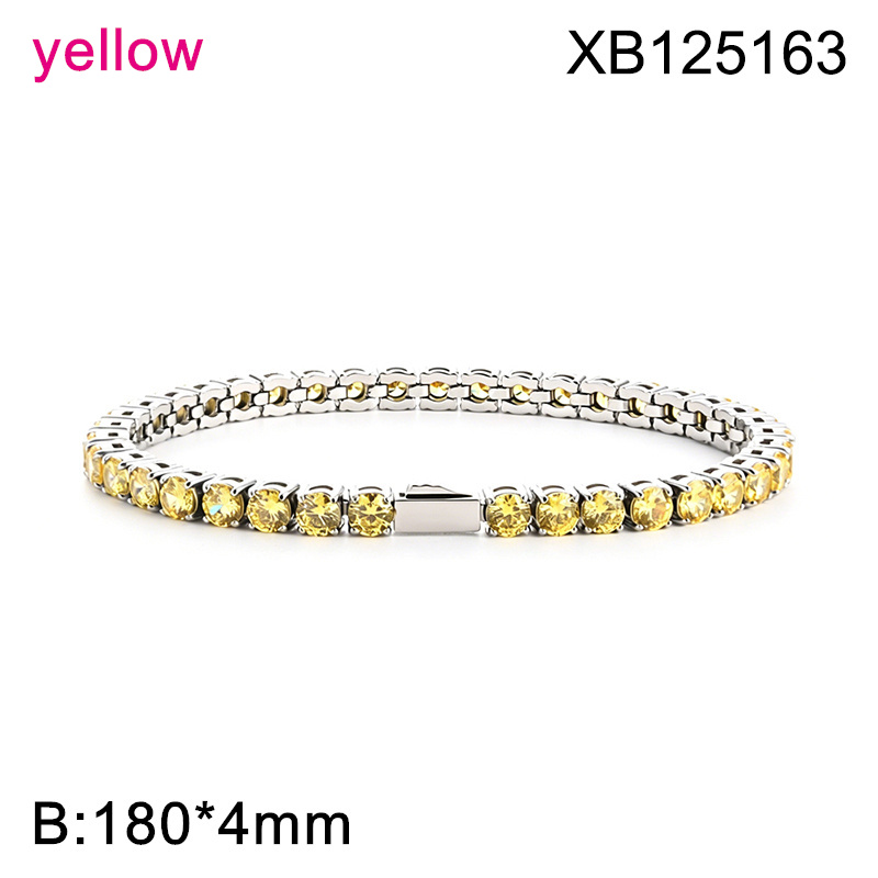Level B Hot Sale Women Jewelry Steel color Yellow Round 316 Stainless Steel Cubic Zirconia Tennis Bracelet