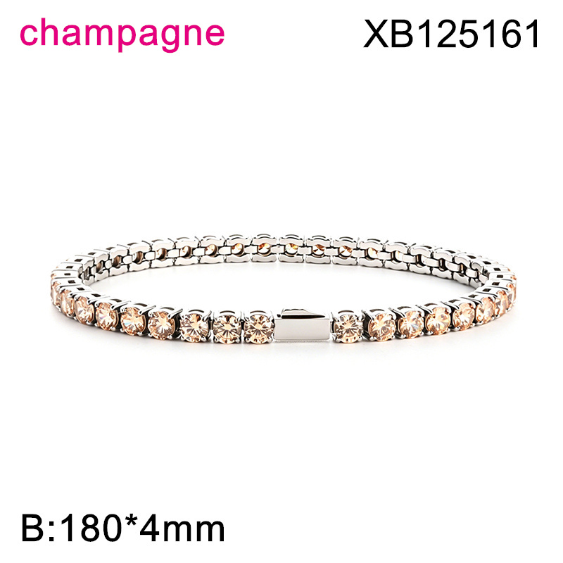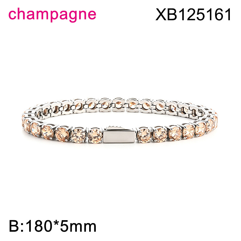 Level B Hot Sale Women Jewelry Steel color Champagne Round 316 Stainless Steel Cubic Zirconia Tennis Bracelet